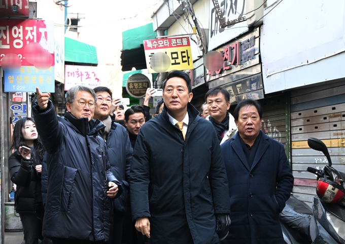 [서울/박기문기자] 오세훈 서울시장이 4일(목) 노후 건축물이 밀집한 세운지구를 찾아 장기간 정체된 정비사업으로 인한 주민 불편과 요구사항을 청취했다. 세운 재개발은 서울시가 민간 참여 유도를 통해 도심에 대규모 녹지를 확보하기 위한 ‘녹지생태도심 재창조 전략’과도 직접 맞닿아 있다.