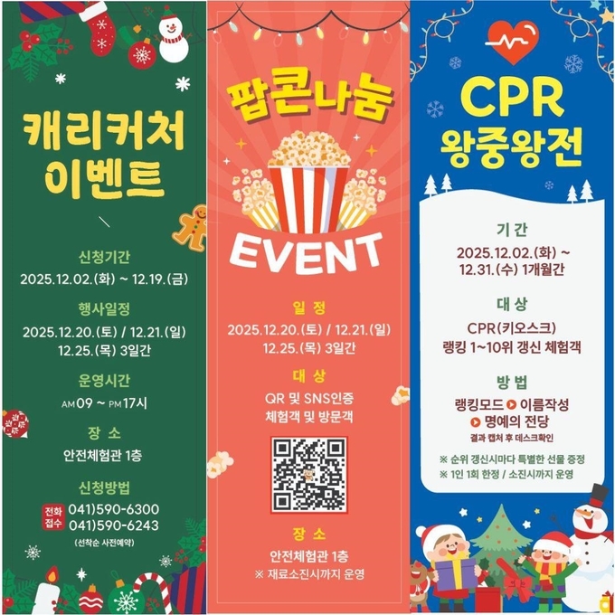 박창우 충남안전체험관장은 “가족들이 자연스럽게 안전을 배우고 익힐 수 있도록 즐거운 체험 중심의 이벤트를 준비했다”라며 “연말을 맞아 많은 도민이 방문해 따뜻한 추억을 만들고 안전교육의 가치도 함께 느껴보길 바란다”라고 말했다.