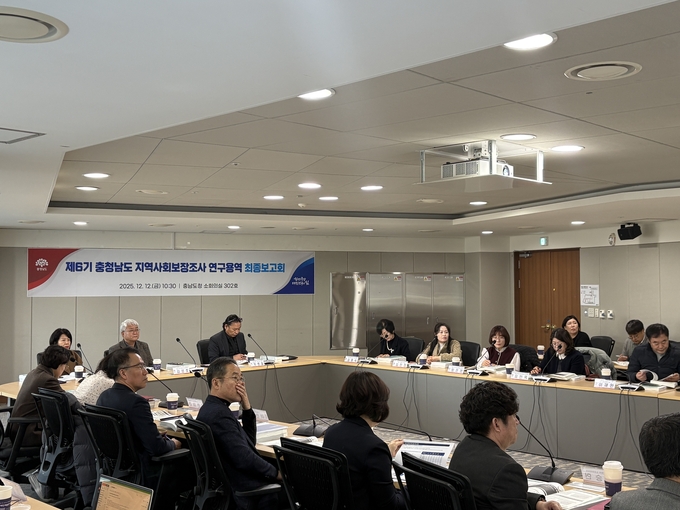[충남/오창환기자] 충남도는 12일 도청 소회의실에서 ‘제6기(2027-2030) 지역사회보장조사 연구용역 최종보고회’를 개최했다.