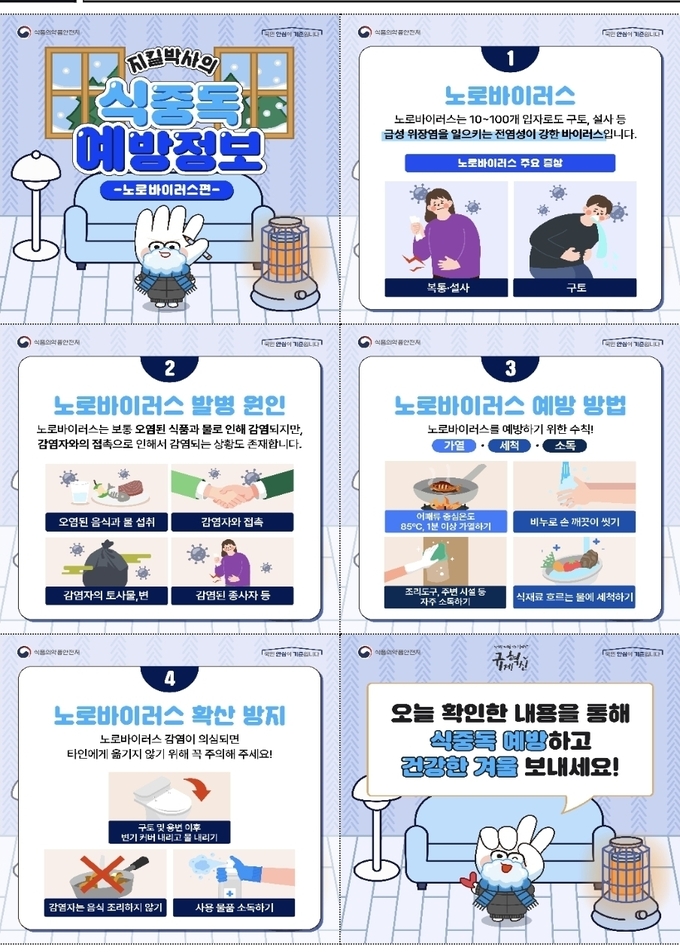 [한국방송/노지한기자] 식품의약품안전처(처장 오유경)는 최근 어린이집, 유치원 등에서 노로바이러스 식중독 의심 신고가 증가함에 따라, 개인 위생관리 등 식중독 예방수칙을 준수해 줄 것을 당부했다.