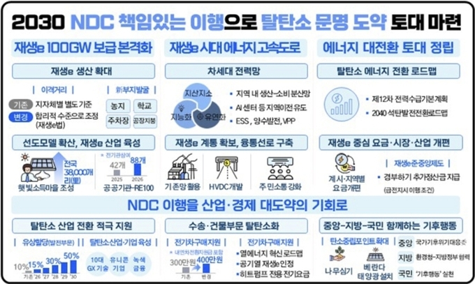 기후부는 '2030 국가 온실가스 감축목표(NDC)'의 책임있는 이행으로 탈탄소 문명 도약의 토대를 마련할 방침이다.