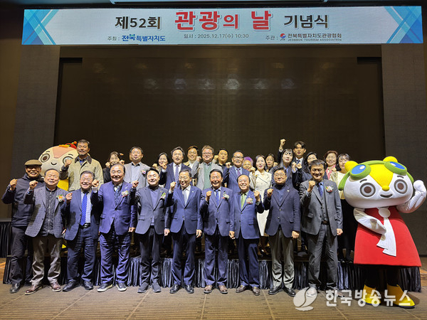 [군산/김주창기자] 전북특별자치도와 전북특별자치도관광협회는 12월 17일 전주 그랜드힐스턴호텔에서 ‘제52회 관광의 날 기념행사’를 열고 관광산업 발전에 기여한 관계자들을 격려했다.