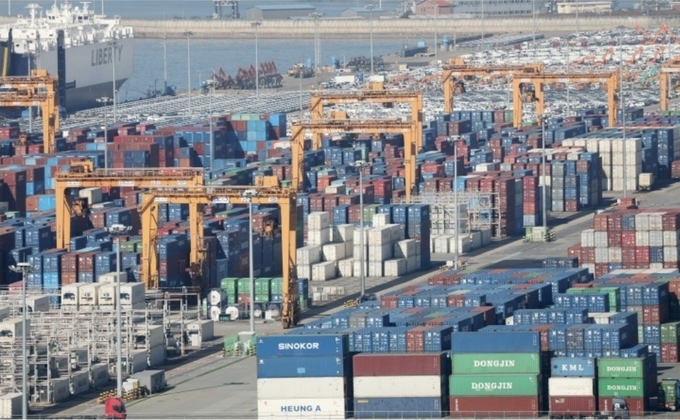 경기 평택시 포승읍 평택항에 수출용 컨테이너들이 쌓여있는 모습. 2025.11.14 (ⓒ뉴스1)