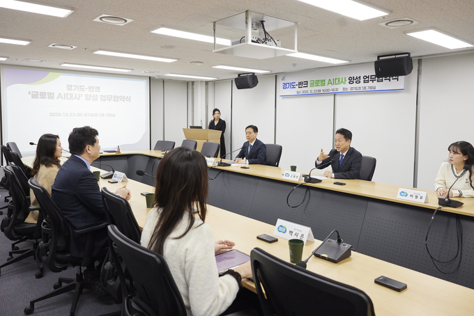 경기도는 23일 경기도청에서 반크와 이런 내용을 담은 ‘글로벌 AI대사’ 양성을 위한 업무협약을 체결하고, 생성형 인공지능(AI) 오류 대응을 위한 민관 협력체계를 구축했다. 협약식에는 고영인 경기도 경제부지사와 박기태 반크 단장을 비롯해 양 기관 관계자 10여 명이 참석했다.
