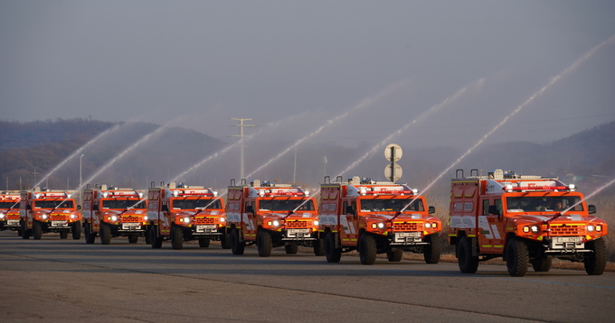 이번에 출고한 다목적 산불진화차량은 산림청·행정안전부·과학기술정보통신부가 공동으로 추진한 연구개발사업의 성과물로, 군(軍) 소형전술차량에 일반 산불진화차의 두 배 이상인 2,000리터의 물탱크를 탑재했다.