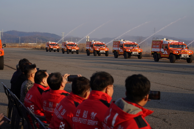 [한국방송/오창환기자] 산림청(청장 김인호)은 24일 경기도 화성시에 위치한 TS한국교통안전공단 자동차안전연구원에서 국산 군용차를 기반으로 제작한 다목적산불진화차 64대 출고 기념식을 개최했다고 밝혔다.
