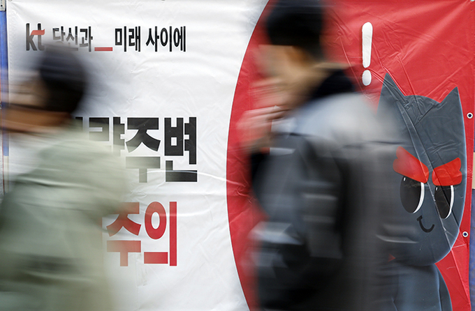 서울시 종로구 인도에 설치된 KT 가람막 앞으로 시민이 지나고 있다. 2025.12.29(ⓒ뉴스1)