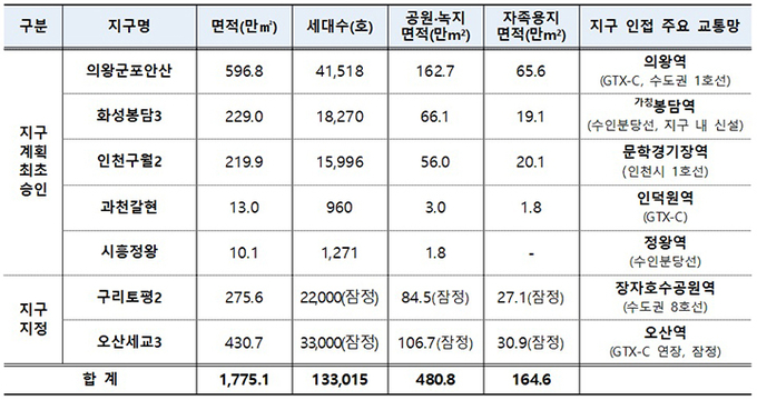 특히 해당 공공주택지구들은 GTX-C·수인분당선 등 주요 노선이 지나는 철도역이 인접해 있어 수도권 주요 지역으로 교통 연결성이 높다.