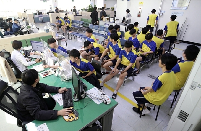 부산 수영구 부산울산지방병무청에서 병역판정검사가 실시된 가운데 입영대상자가 현역대상자들이 신체검사를 받고 있다. 2025.1.14 (ⓒ뉴스1)