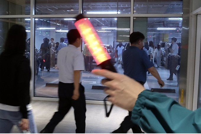 전국에서 공습 상황을 가정한 민방위 훈련 공습경보 사이렌이 울리자 정부세종청사 직원들이 중앙동 지하 주차장으로 대피하고 있다. 2025.8.20 (사진=연합뉴스)