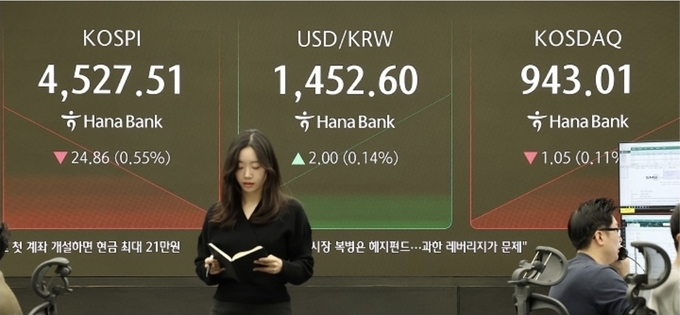 9일 서울 중구 하나은행 딜링룸 현황판에 코스피와 코스닥이 표시돼 있다.(사진=연합뉴스)