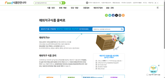 이 누리집은 2021년부터 관계 기관에 흩어져 있던 해외직구식품 안전 정보를 한곳에 모아 제공하고 있다.