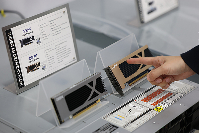 CES 개막일인 지난 6일(현지시간) 미국 네바다주 라스베이거스 컨벤션센터(LVCC)에 한국 AI반도체 기업 딥엑스의 NPU가 전시돼 있다.(사진=연합뉴스)
