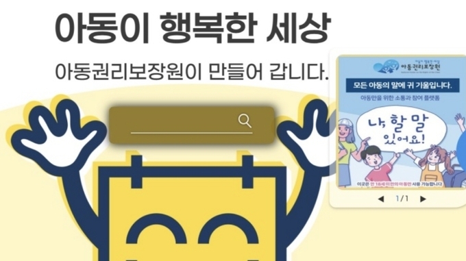 아동권리보장원 누리집. 앞으로 국가아동권리보장원으로 명칭이 변경된다.