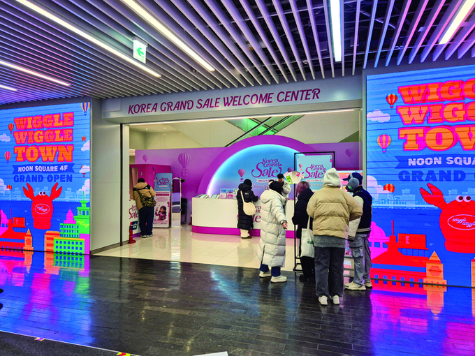 1월 12일 오전 영하 5도의 추운 날씨에도 서울 명동 눈스퀘어 1층에 있는 '코리아그랜드세일 웰컴센터'는 한국을 찾은 외국인 관광객들로 북적였다. 웰컴센터는 한국 관광 활성화를 위해 열린 2026 코리아그랜드세일 기간 동안 외국인 관광객에게 여행 정보와 할인 혜택, 통역 서비스, 다양한 문화 체험 프로그램 등을 제공한다. 명동을 찾은 외국인 관광객에게는 지나칠 수 없는 베이스캠프 같은 곳이다.