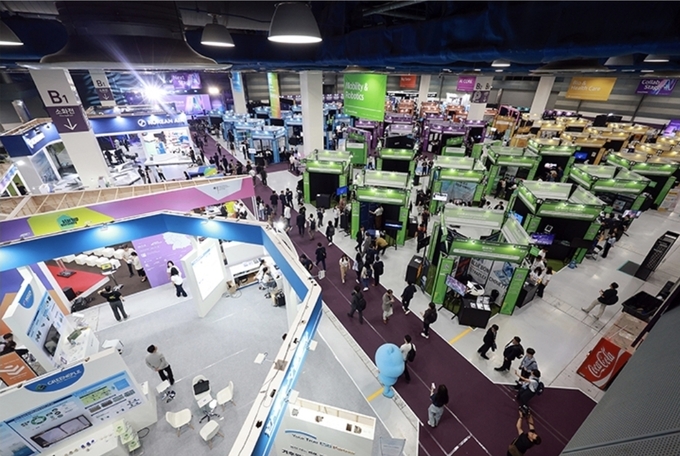 26일 서울 강남구 코엑스에서 개막한 벤처·스타트업 박람회 '넥스트라이즈 2025'에서 관람객과 업체 관계자들이 부스를 살피고 있다. 2025.6.26 (사진=연합뉴스)