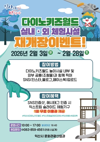 익산시는 오는 2월 3일부터 다이노키즈월드 실내외 놀이체험시설을 재개장한다고 29일 밝혔다.