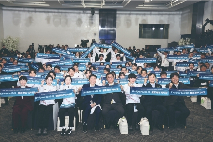 2026 밀라노-코르티나 동계올림픽 대한민국 선수단 결단식'이 1월 22일 서울 올림픽파크텔 올림피아홀에서 열렸다. 최휘영 문화체육관광부 장관을 비롯해 참석자들이 선수단과 함께 선전을 기원했다. 사진 문화체육관광부