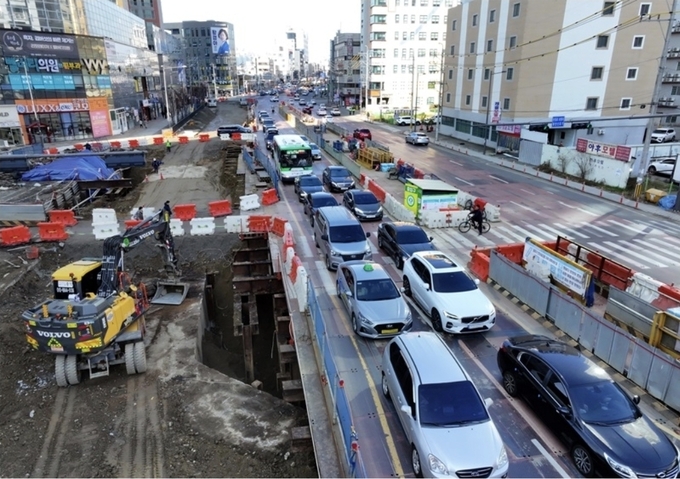 지하차도 건설이 동시 진행되는 광주 남구 백운광장 주변 광주도시철도 2호선 공사 구간 도로가 15일 통제돼 있다. 2025.12.15(사진=연합뉴스)