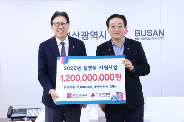 [부산/문종덕기자] 부산시(시장 박형준)는 오늘(6일) 오후 2시 40분 시청 의전실에서 부산사회복지공동모금회(회장 이수태, 이하 모금회)와 함께 '2026년 설맞이 성금 등 전달식'을 개최한다고 밝혔다. 이번 전달식은 설 명절을 앞두고 시민의 정성이 모인 성금을 가장 먼저 이웃의 일상으로 연결하는 자리다.