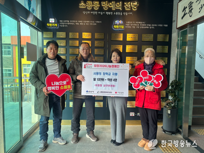 장학금은 조손가정, 한부모 가정 등 취약계층 초·중학생 4명을 대상으로 전달됐으며, 상인번영회는 매달 10만 원씩 고등학교를 졸업할 때까지 지속적으로 장학금을 전달할 예정이다.