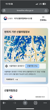 특히 산불의 99%가 인위적 요인으로 발생하는 국내 특성을 반영해 인구 밀집도와 등산로 활용 등 인간 활동 데이터를 추가한 예측 기술을 개발 중이며, 2027년부터 이를 시범 적용해 예측의 정밀도를 강화할 예정이다.