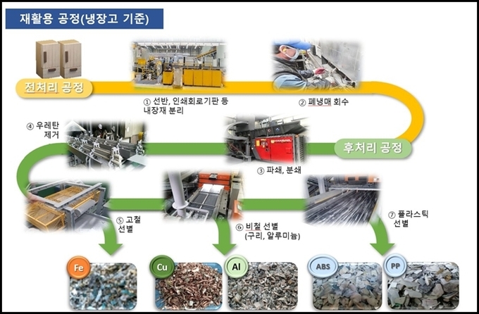 냉장고 재활용 공정 (e순환거버넌스 제공)