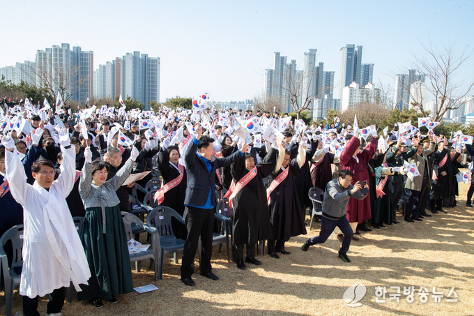 군산시가 주최하고 군산3‧1운동기념사업회가 주관한 이 날 행사에는 독립유공자 유족과 사회 각계 대표, 시민, 자원봉사자, 학생 등 800여 명이 참석했다.