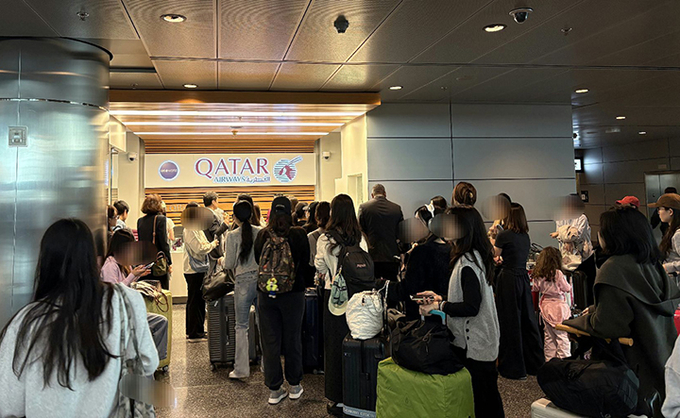 지난 9일 카타르항공의 인천 직항편 탑승을 위해 우리 국민들이 수속 절차를 밟고 있다.사진=(외교부 제공)