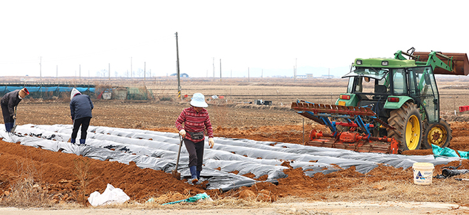 11일 인천 강화군 교동도에서 농민들이 밭에 멀칭비닐을 덮으며 농사 준비를 하고 있다 2026.3.11 (사진=연합뉴스)