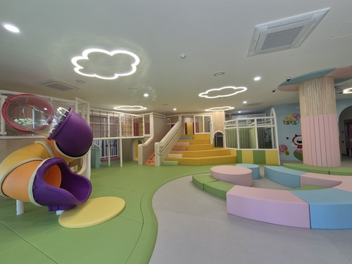 실내 공간에는 통슬라이드, 낚시놀이, 미디어존 등 어린이들이 안전하게 뛰어놀 수 있는 다양한 놀이시설을 갖췄다.