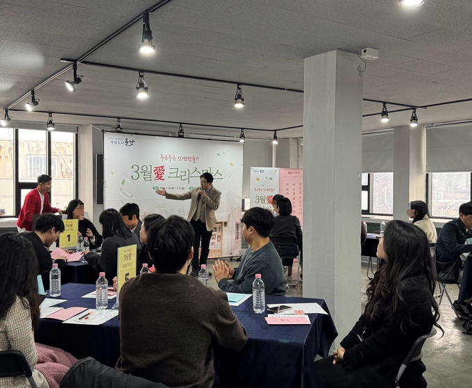 [군산/김주창기자] 따스한 봄기운이 완연한 군산의 거리가 청춘남녀들의 설렘으로 물들었다. 군산시는 지난 3월 14일부터 15일까지 1박 2일 동안 미혼남녀들의 소중한 인연을 찾아주는 ‘두근두근 인연만들기 3월 愛 크리스마스’를 개최하고 총 7쌍의 커플이 탄생하는 성과를 거뒀다.