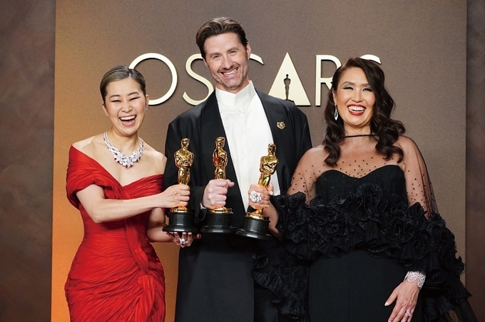이날 '케데헌'은 '주토피아2', '엘리오' 등 쟁쟁한 후보를 제치고 장편 애니메이션상 트로피를 품에 안았다. 매기 강 감독은 "저와 닮은 분들이 주인공인 이런 영화가 나오기까지 너무 오랜 시간이 걸려 미안하다"며 "이 상은 한국과 전 세계 모든 한국인을 위한 것"이라고 수상 소감을 밝혔다. 공동 연출자 크리스 아펠한스 감독은 "음악과 이야기에는 문화와 국경을 초월해 우리를 연결하는 힘이 있다"며 "젊은 영화제작자, 예술가, 음악가에게 '당신의 이야기를 들려달라. 당신의 목소리로 노래하라. 세상이 기다리고 있다'는 말을 전하고 싶다"고 말했다.