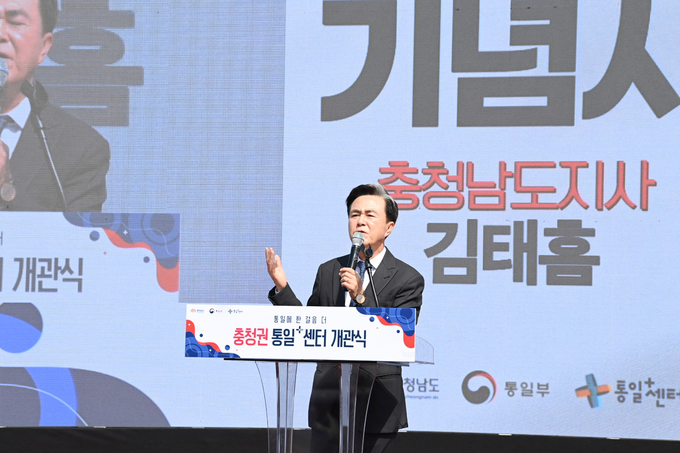 충남도는 23일 내포신도시에서 김태흠 지사 등 300여 명이 참석한 가운데 충청권 통일플러스(+)센터 개관식을 개최했다.