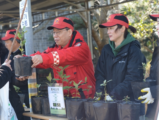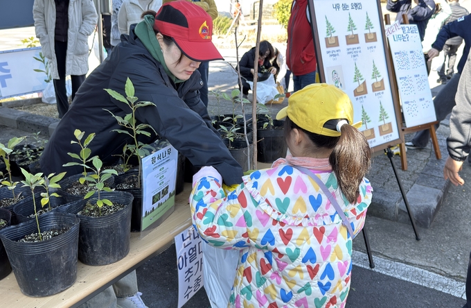 이번 행사에서 황근, 황칠나무, 참식나무, 소철 묘목을 나눠줬다. 이들 수종은 탄소흡수는 물론 식‧약용, 산업용, 관상‧조경용으로도 활용가치가 높은 유용식물이다. 연구소는 현장에서 나무 심는 요령을 안내하고 산불 예방 협조도 함께 당부했다.