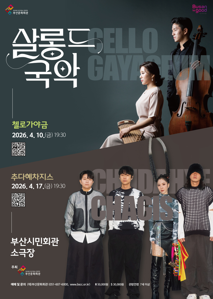 (재)부산문화회관(대표이사 차재근)은 오는 4월 10일(금), 4월 17일(금) 오후 7시 30분, 부산시민회관 소극장에서 <살롱 드 국악 – 첼로가야금, 추다혜차지스>를 선보인다.
