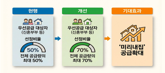 <‘미리내집’ 확대 위한 ‘우선공급 비율’ 규제 완화…신혼부부 주거안정 지원 및 출산율 제고>