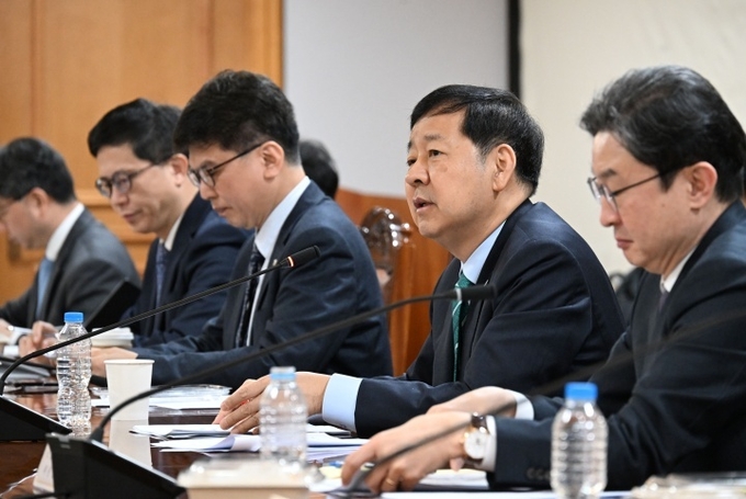 구윤철 부총리 겸 재정경제부 장관이 2일 서울 중구 은행연합회에서 열린 시장상황점검회의를 주재하고 있다.(ⓒ뉴스1, 재정경제부 제공)