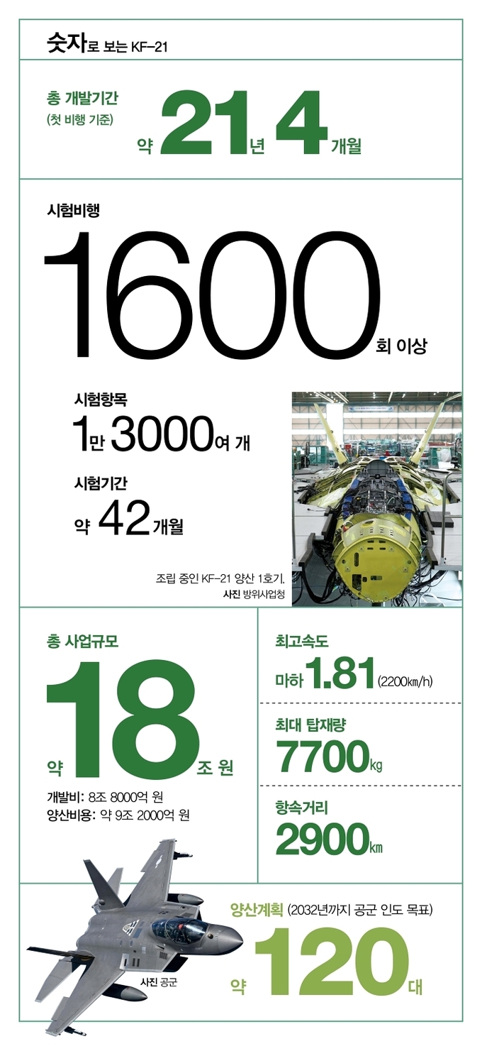 한국형 전투기 개발(KF-X) 사업은 2001년 김대중 당시 대통령의 국산 전투기 개발 선언에서 출발했다. 이후 2015년 KF-X 사업이 본격화됐다. 방위사업청이 사업을 주관하고 한국항공우주산업이 개발을 맡았다. 총 사업비는 개발비(약 8조 8000억 원)와 양산비용(약 9조 2000억 원)을 합해 총 18조 1000억 원. 단군 이래 최대 규모의 무기 개발 사업으로 평가된다.