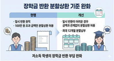 <(171호)결격사유로 장학금 반환 시, 학생 부담 고려 금액 무관 12개월 ‘분할 상환’>
