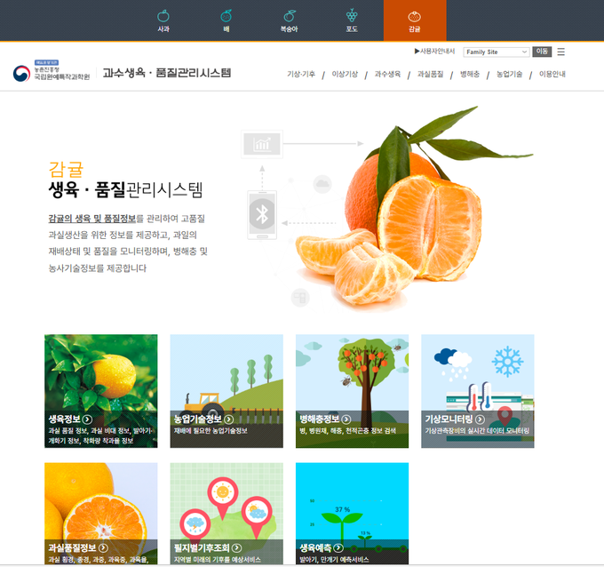 한편, 주산지별 노지 감귤의 싹 나는 시기와 꽃 피는 시기, 당도, 산 함량 등 과실 품질 변화 결과는 국립원예특작과학원 과수생육품질관리시스템(fruit.nihhs.go.kr)에서 확인할 수 있다.