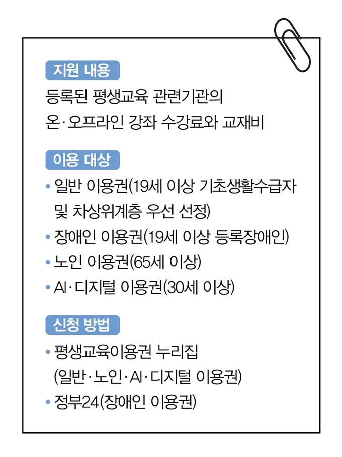 배움의 비용이 부담돼 망설였던 분들께 반가운 소식이에요. 교육부와 17개 시·도가 함께 추진하는 '평생교육이용권' 사업이 2026년에도 이어지고 있어요.