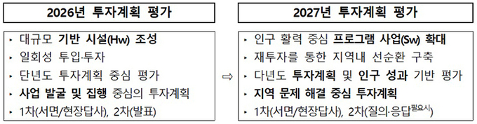 특히 일자리·육아·돌봄 등 '살고 싶은 지역 만들기'에 집중 투자하는 바, 우수 지역에는 혜택을 강화하고 일회성 투입·투자에서 재투자를 통한 지역내 선순환도 구축한다.