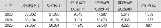 현행법은 행정청의 서류 누락 등 수급자의 잘못 없이 사회보장급여가 과잉 지급된 경우에도 반환명령을 의무화하고 있다. 김 의원이 보건복지부로부터 제출받은 자료에 따르면, 2025년 생계급여 과잉지급에 따른 반환명령 89,857건 중 94.2%가 100만 원 이하의 과잉지급분에 대한 것으로 드러났다. 특히, 35.7%(32,094건)는 10만 원 이하의 소액에 불과한 것으로 나타나, 생계에 직결되는 급여를 두고 소액까지 일률적으로 환수하는 현행 방식이 과도한 행정력 낭비이자 취약계층에 대한 과잉 대응이라는 비판이 제기된다.