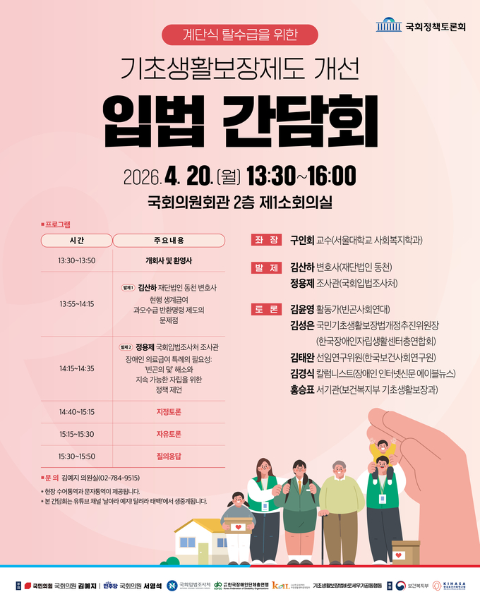 한편, 김예지 의원은 오는 4월 20일(월) 국회의원회관에서 「계단식 탈수급을 위한 기초생활보장제도 개선 입법 간담회」를 개최한다. 국회입법조사처, 더불어민주당 서영석 의원, 한국장애인단체총연맹, 한국장애인자립생활센터총연합회, 기초생활보장법바로세우기공동행동과 공동주최하는 이번 간담회는 김예지 의원 유튜브 채널 ‘날아라 예지! 달려라 태백!’을 통해서도 생중계될 예정이다.