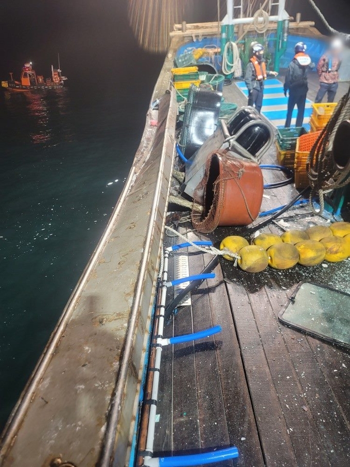 [군산/김주창기자] 19일 새벽 군산 해상에서 조업차 이동하던 어선과 예인선에 끌려가던 부선이 충돌하는 사고가 났으나, 다행히 인명피해나 해양오염은 발생하지 않았다.
