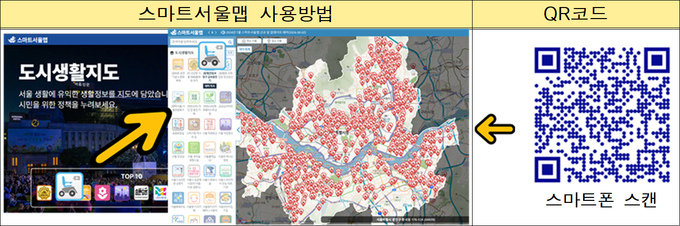 이어 스마트서울맵을 중심으로 서울동행맵 및 서울열린데이터 광장 자료가 연계되도록 하여, 전동보장구 충전소와 관련해 세 개의 사이트에서 동일한 정보를 편리하게 확인할 수 있도록 하였다.