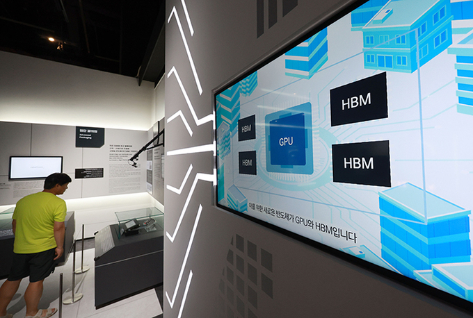 7일 경기도 국립과천과학관 미래상상SF관에 설치된 반도체 산업 설명 영상에 그래픽처리장치(GPU)와 고대역폭 메모리(HBM) 구조 등에 대해 설명하는 영상이 나오고 있다. 2025.8.7 (사진=연합뉴스)