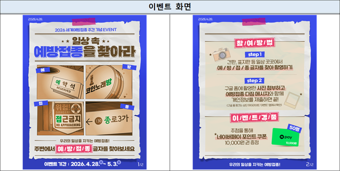 둘째 날 ~ 마지막 날 동안에는 예방접종 온라인 참여이벤트가 진행된다.