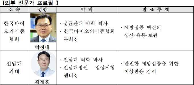 질병관리청 국민소통단 10여명이 참여 예정이며, 전남대 의과대학 김계훈 교수와 한국바이오의약품협회 박정태 부회장이 참여하여 예방접종에 대한 국민들의 궁금증을 풀어줄 예정이다.